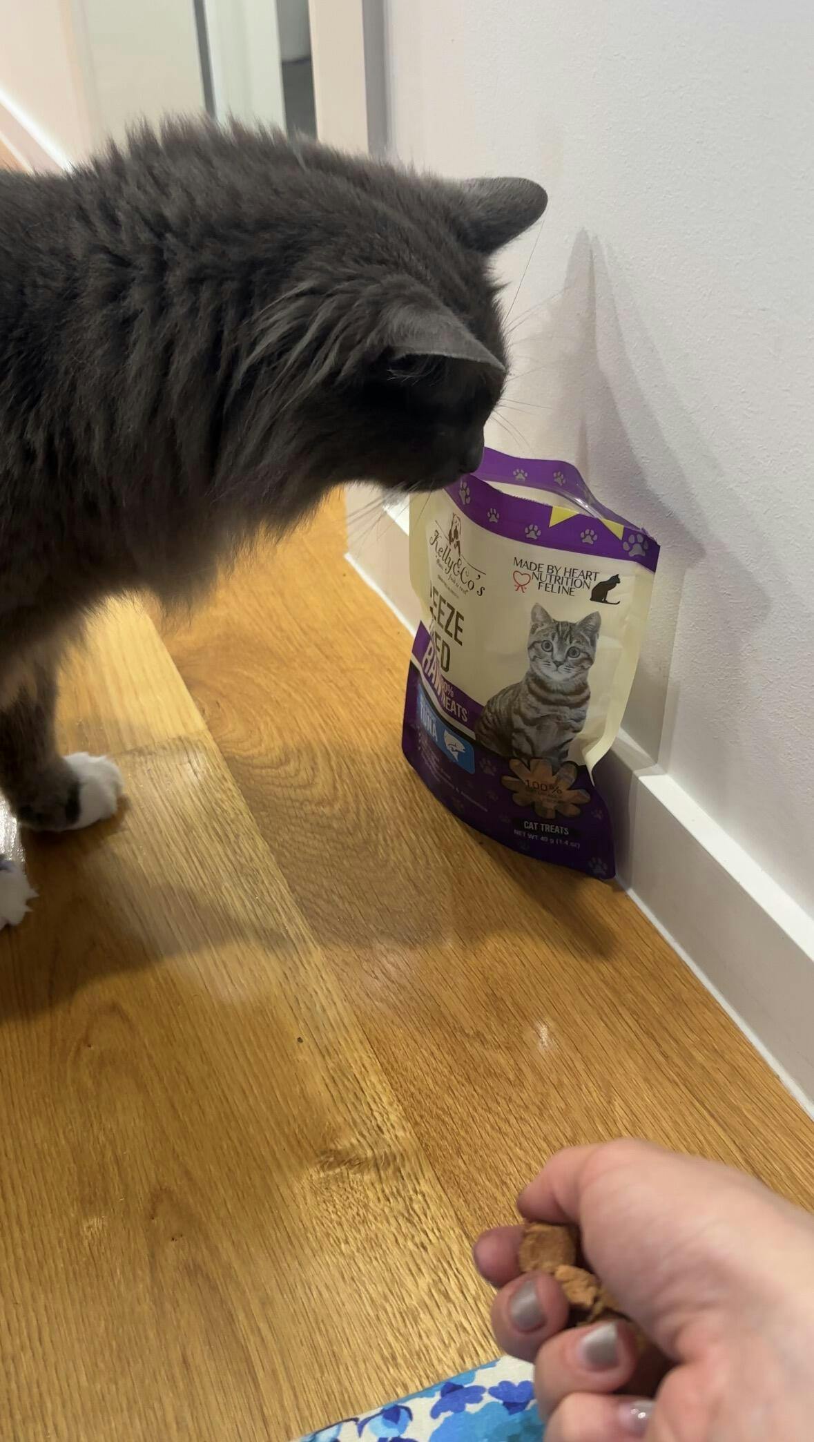 My cat absolutely loves this one. I have tried many other freeze dried treats, but all of them are quite mushy or on a softer side. My cat has a preference for crunchy food and these freeze dried treats are actual pieces of fish (you can see fish skin in Mackerel treats) and are on a crunchier side.